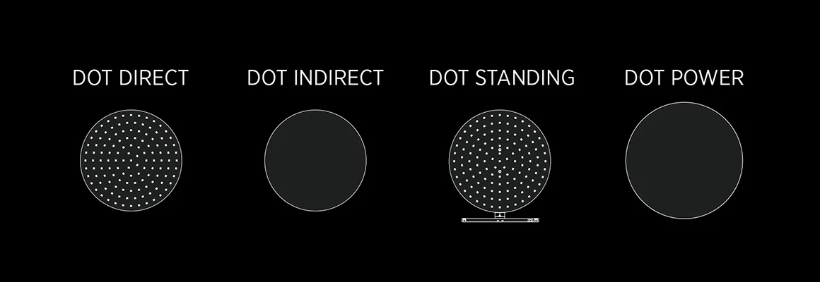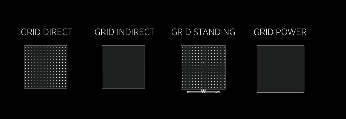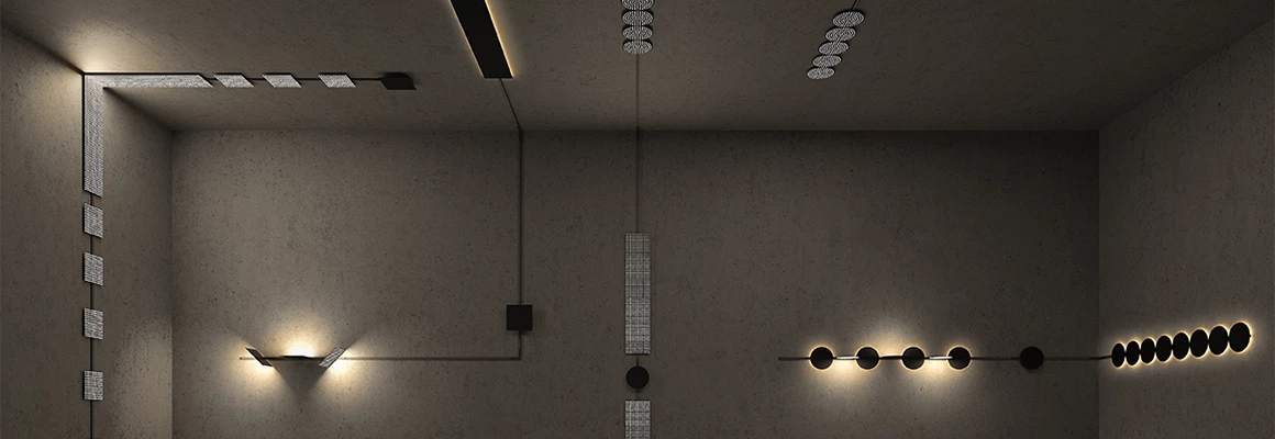 The MINIMAL TRACK system can be furnished with three LED light sources: DOT, GRID and DASH (coming soon). The elementary shapes of round, square and line form the basis of a kit of parts which allows infinite possibilities to design graphic lighting sculptures.