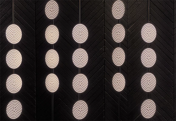 CODE utilises bare LEDs on circuit boards that can be used to create thin strips, delicate chains and continuous columns of light. This liberates architects and specifiers to play with what could almost be considered the CODE construction toy box.
