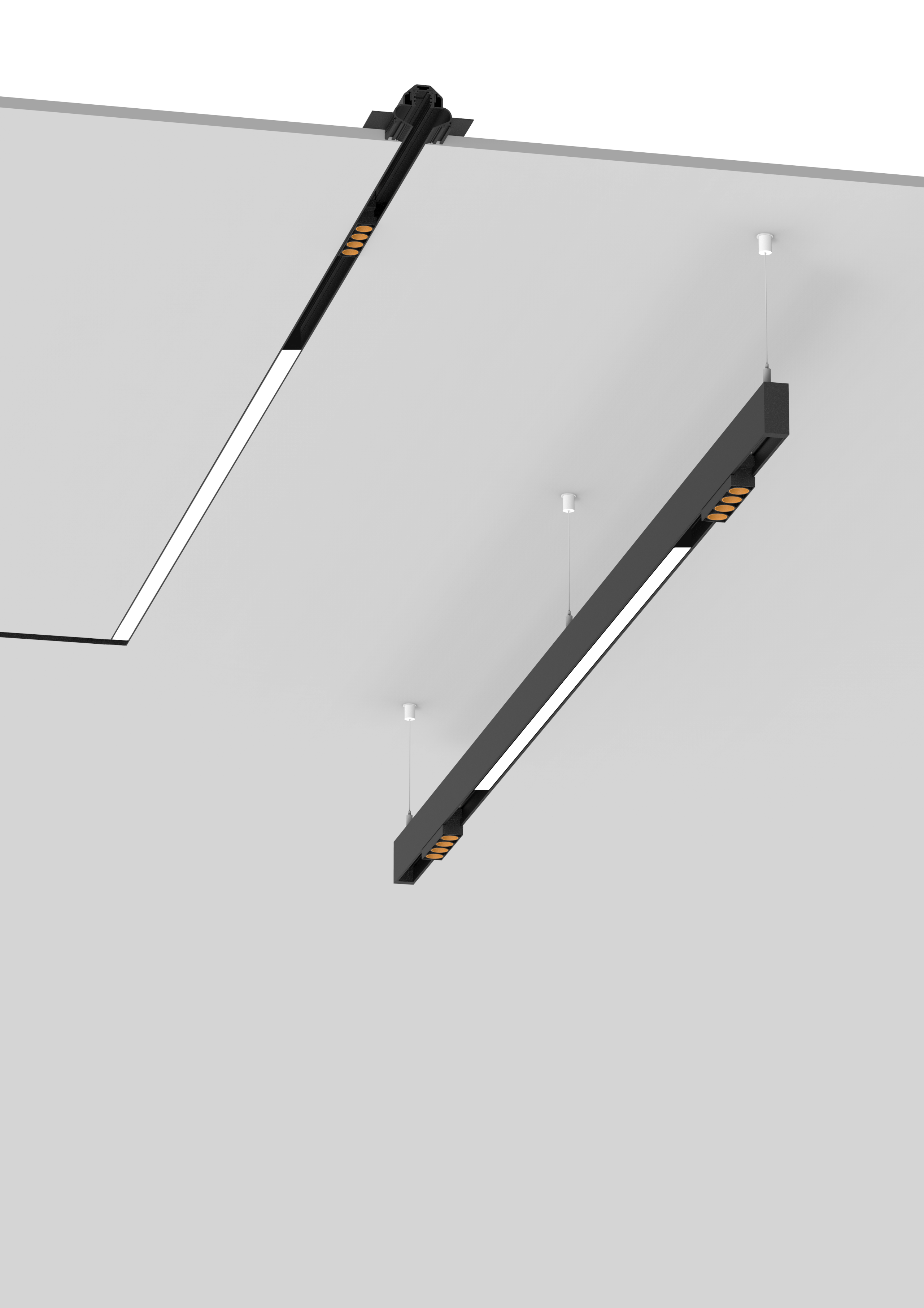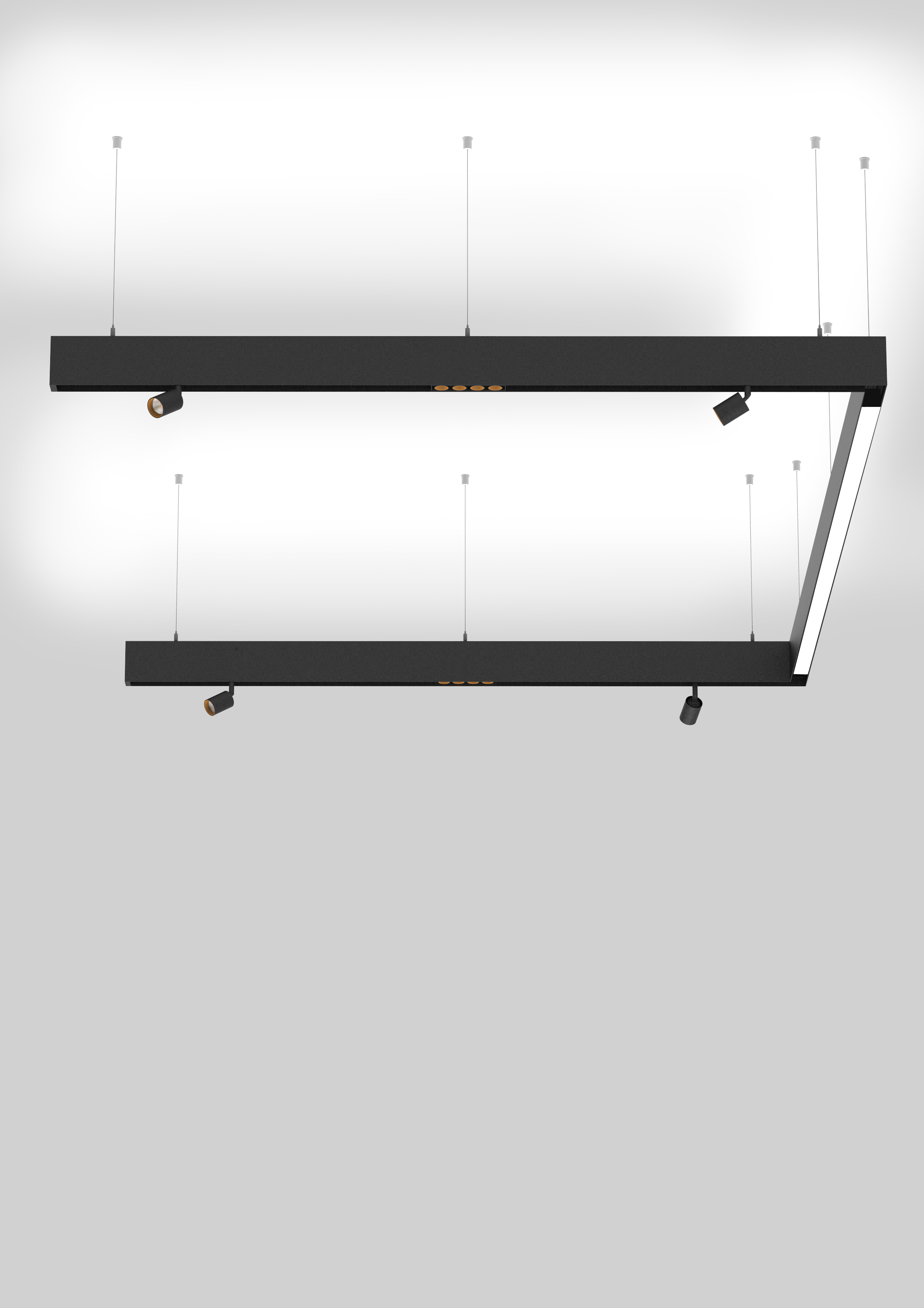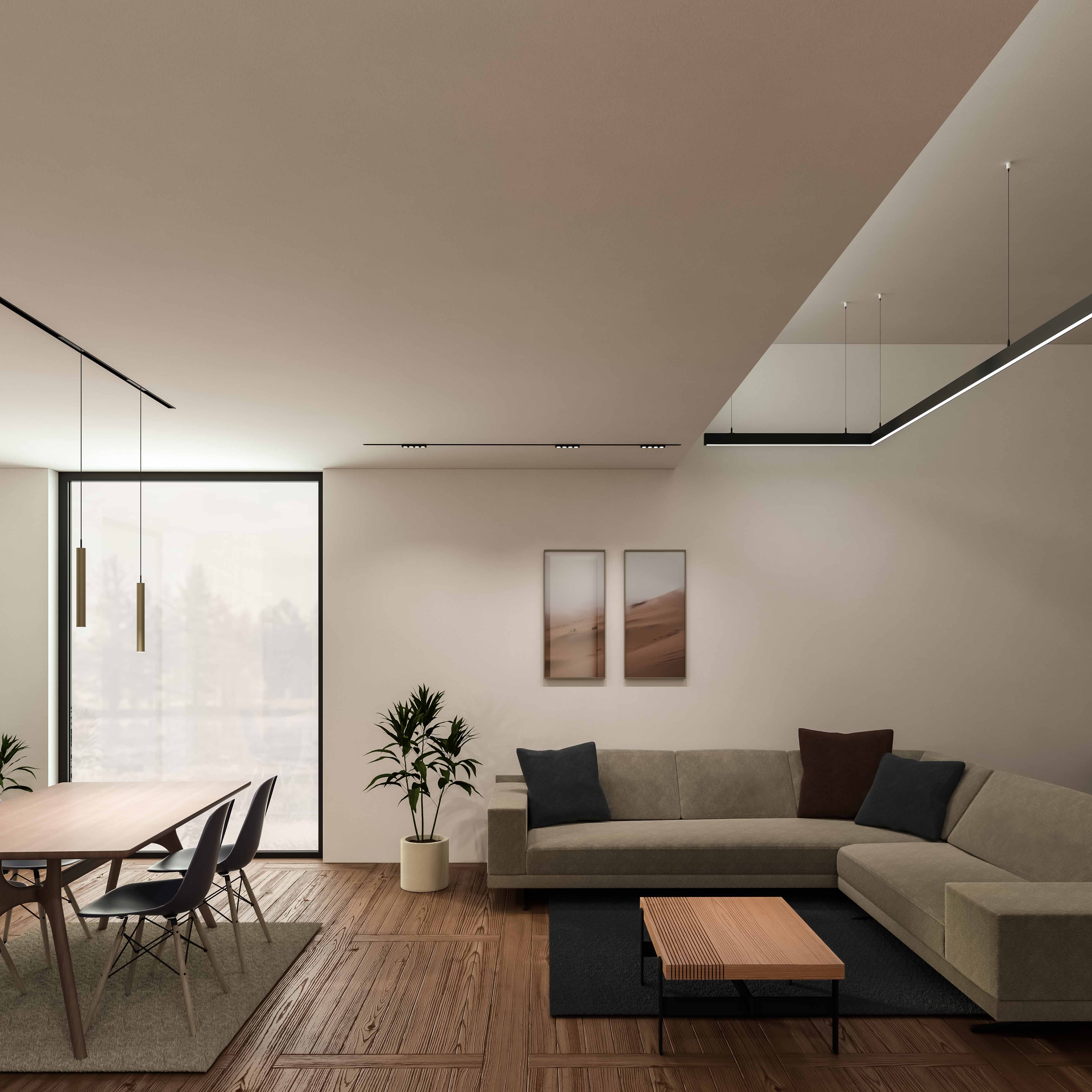 HYPRO 40 is the multifunctional profile system from PROLICHT. This is - in its latest version as HYPRO-X 40 - now also available with an additional indirect ceiling lighting in the suspended version. The profile system HYPRO-X 40 is only 2 cm higher and compatible with all existing HYPRO modules. The indirect light can be controlled individually and independently of the direct lighting.