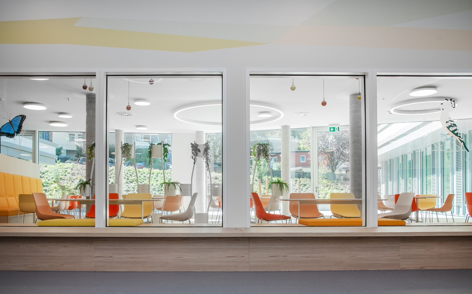 The Kinderzentrum Bethel in Bielefeld is designed to foster a sense of security and support the healing process through thoughtful interior architecture. Inspired by maritime elements, soft colors, natural materials, and carefully curated lighting create a calming atmosphere.
