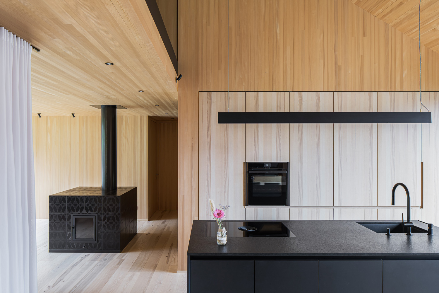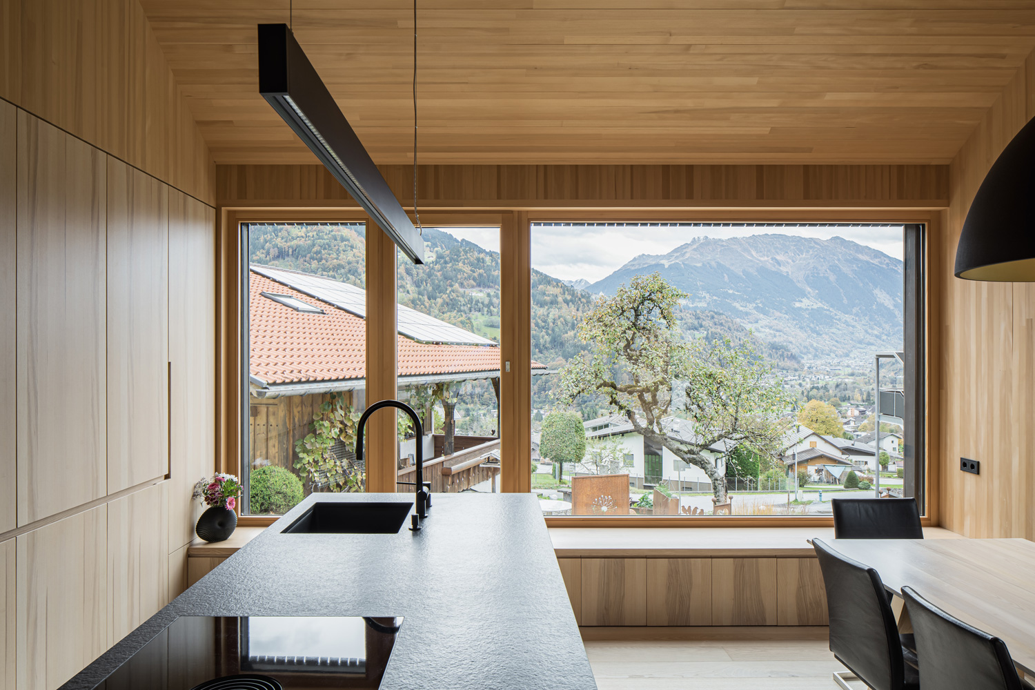The design of this detached house consistently uses wood as the central material, which creates a warm, inviting atmosphere. The natural grain and soft color tones give the rooms a cozy, modern feel, while the clear design language ensures a timeless elegance.