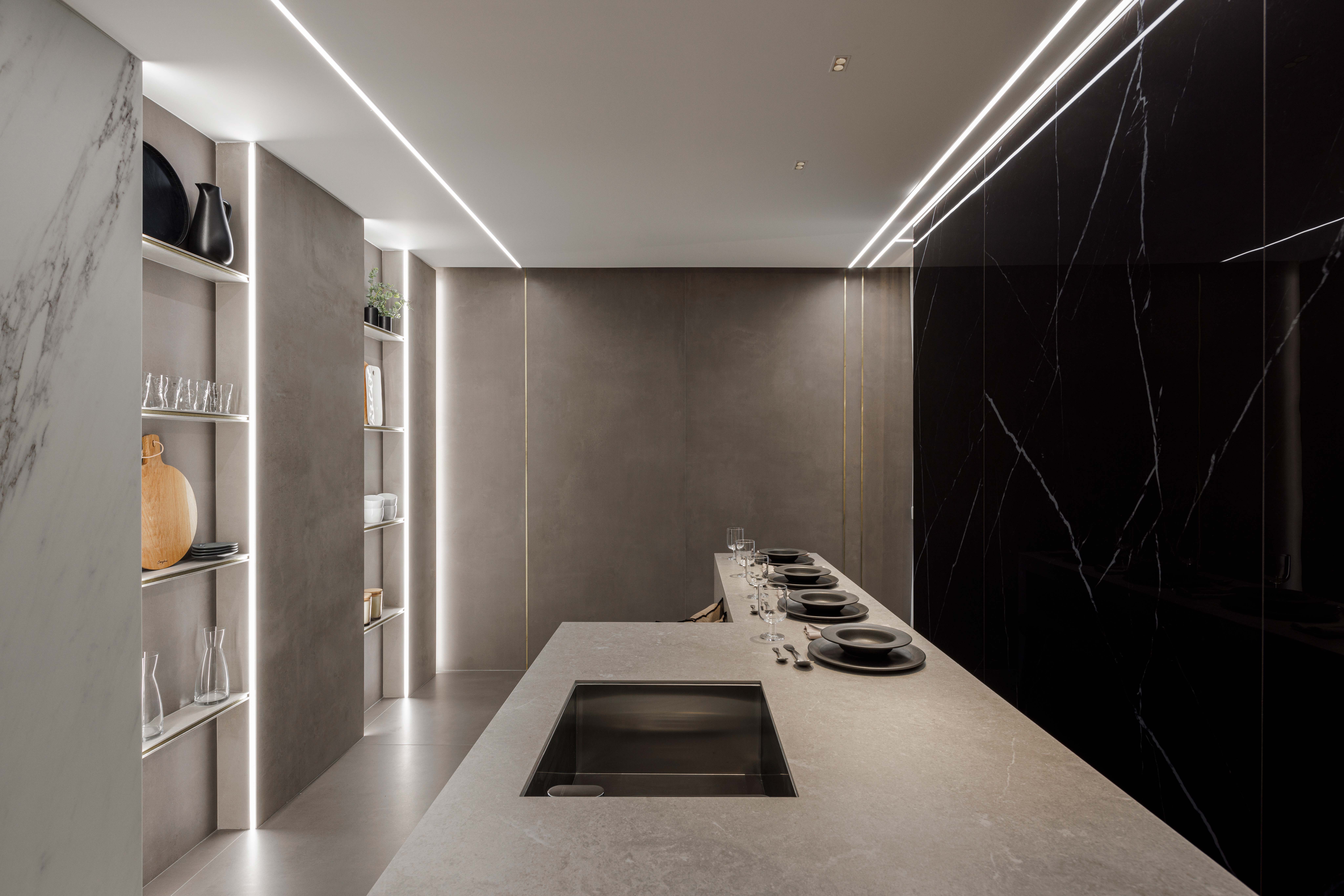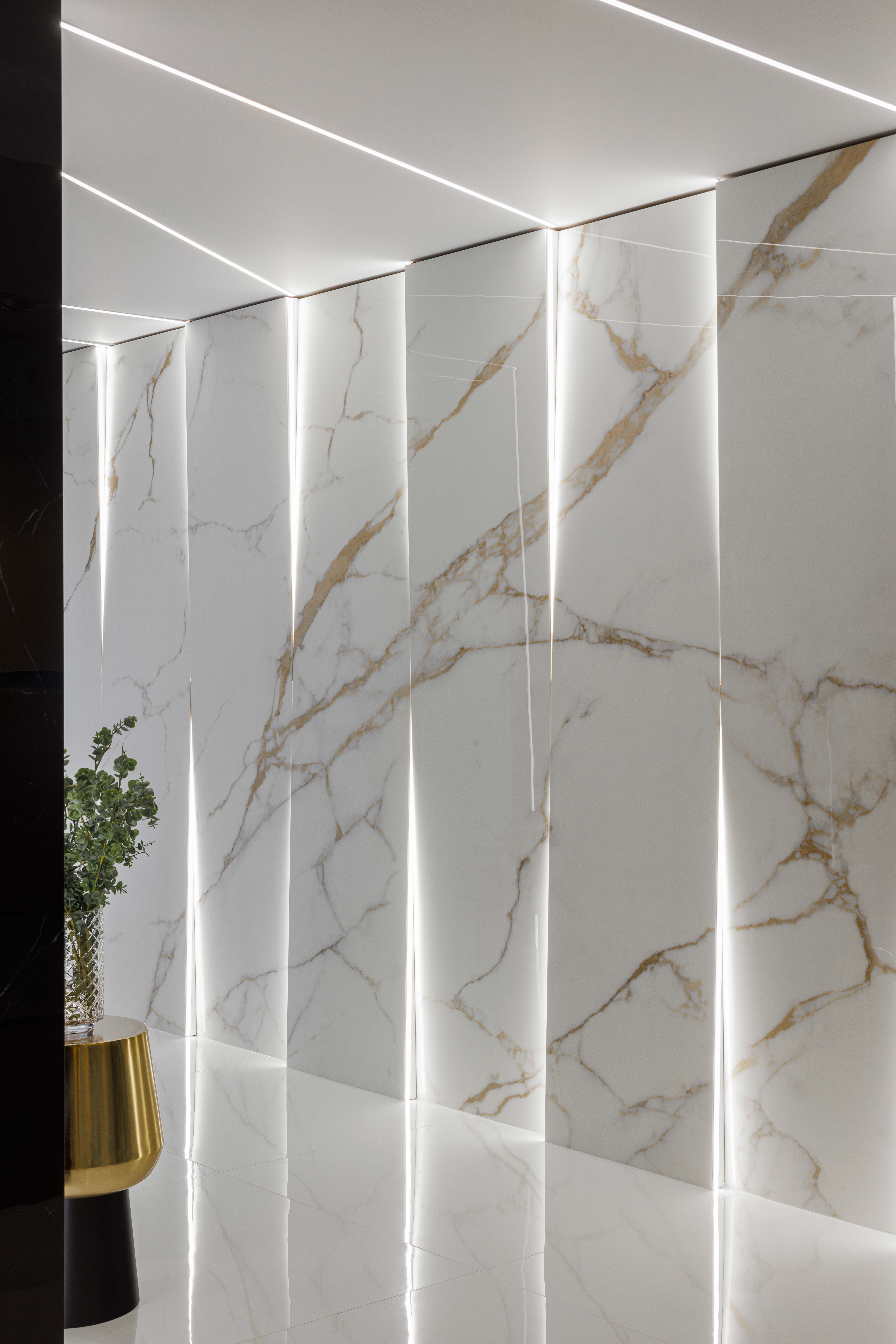 To achieve the desired lighting effect, Prolicht's HYPRO, MAGIQ, and CENTRIQ products were meticulously chosen. These cutting-edge lighting solutions, integrated seamlessly with the showroom's design, highlight the beauty of Margres' tiles and create an inspiring environment for creative exploration.