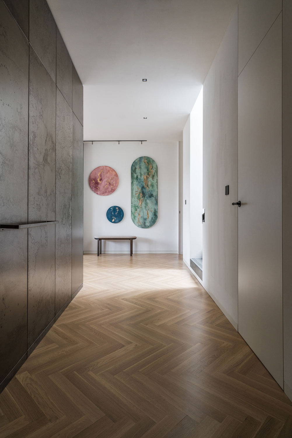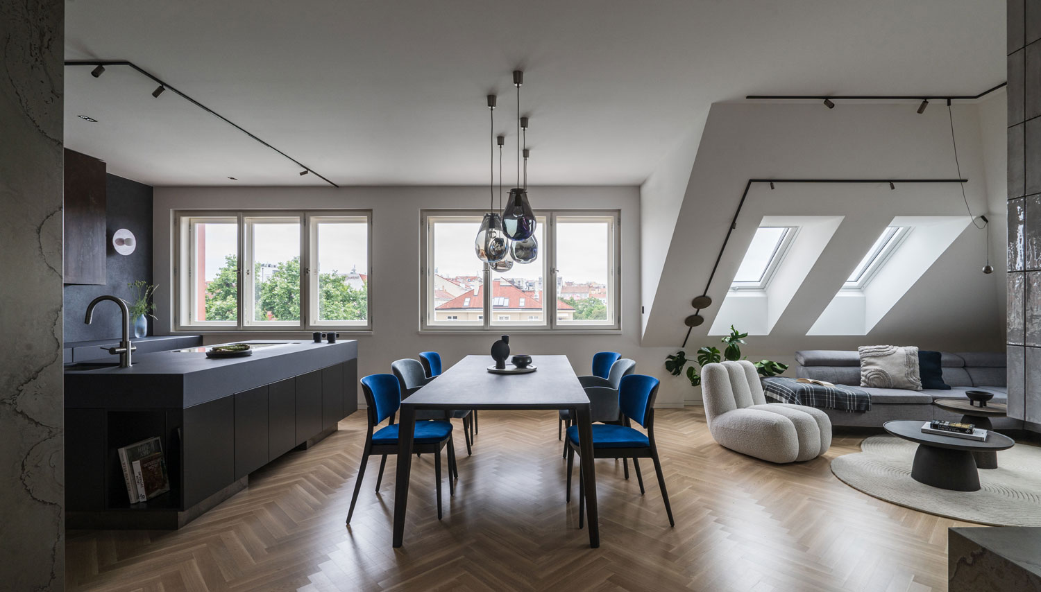 In this project, a private flat was created in a new attic superstructure of a Prague apartment block in the Vinohrady district. The design of the 168 m² penthouse flat uses a play of colours, textures and lighting moods to create different atmospheres and a comfortable living experience depending on the room. This is made possible both by generous window fronts and by the combination of our Minimal Track and Imagine product families, which are characterised above all by their flexibility and thus make creative living dreams come true.