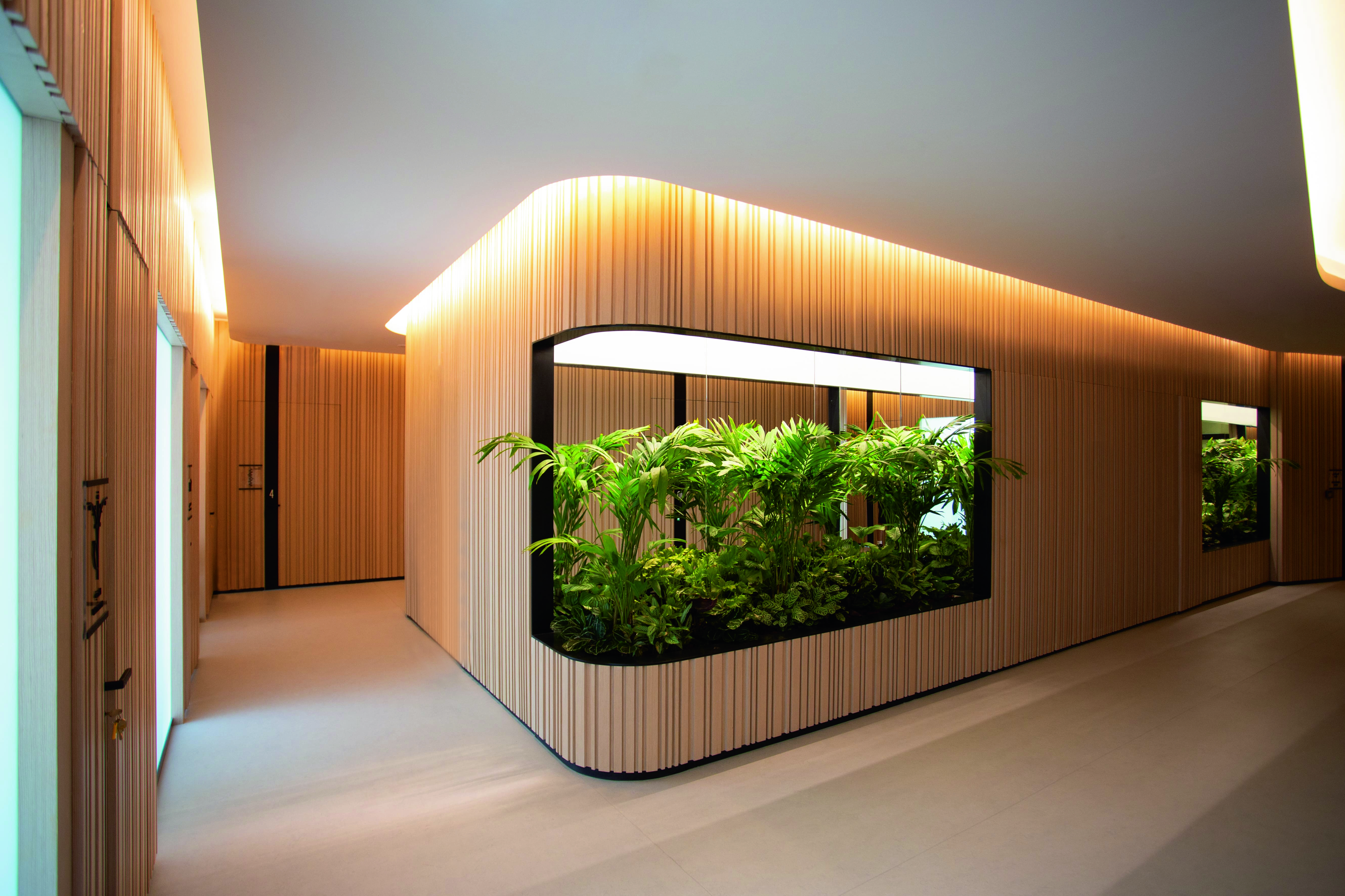 Seed Medical Centre is an urban wellness destination that combines ancient wisdom with modern tools and expertise, delivering a holistic ecosystem of comprehensive health, nourishment and healing. Inside are waiting lounges, visiting areas with different specialist doctors, treatment rooms, test and sampling rooms, and offices. Several green areas with tropical plants are inserted within the environment, with specific lights and “artificial skylights” in the public area) designed to support them. The light looks like coming from outside because the software changes the light spectrum like IN NATURE, the air is cleaner, with less co2, more oxygen.