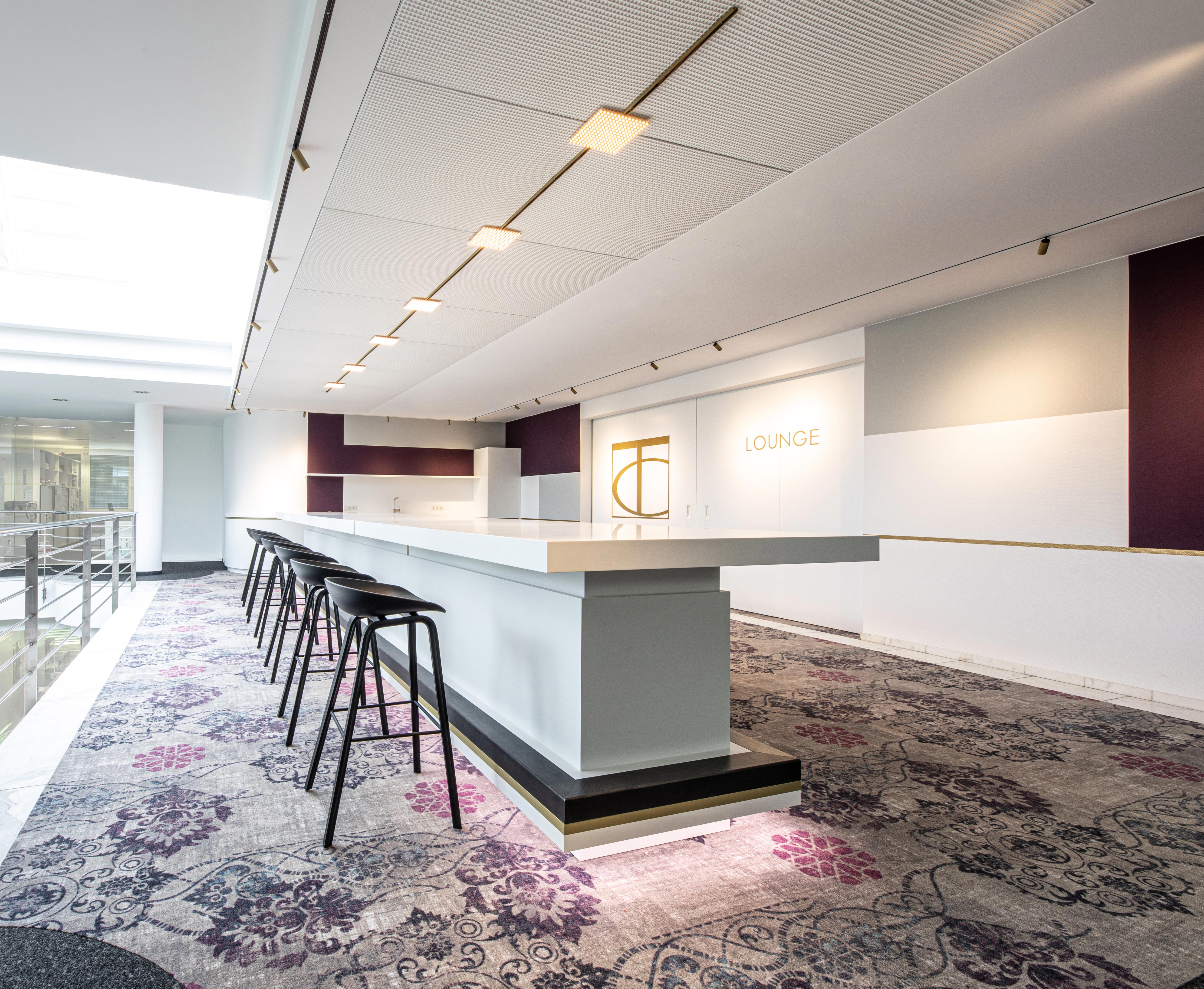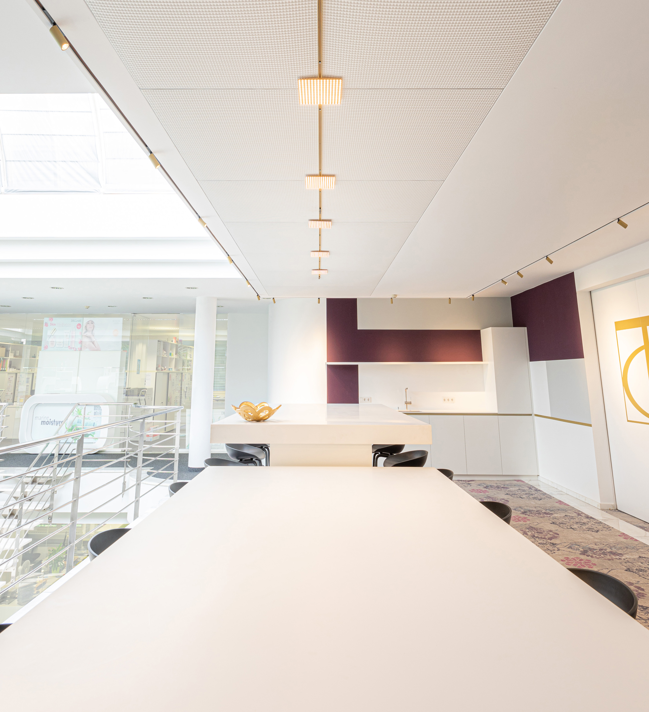 PROLICHT crafts the building's ambient and effective lighting. They've seamlessly integrated the MINIMAL TRACK system, the CODE system, and the IMAGINE downlights. These fixtures, sleek and elegant, ensure optimal working conditions. They also infuse the space with a vibe of modernity and style.