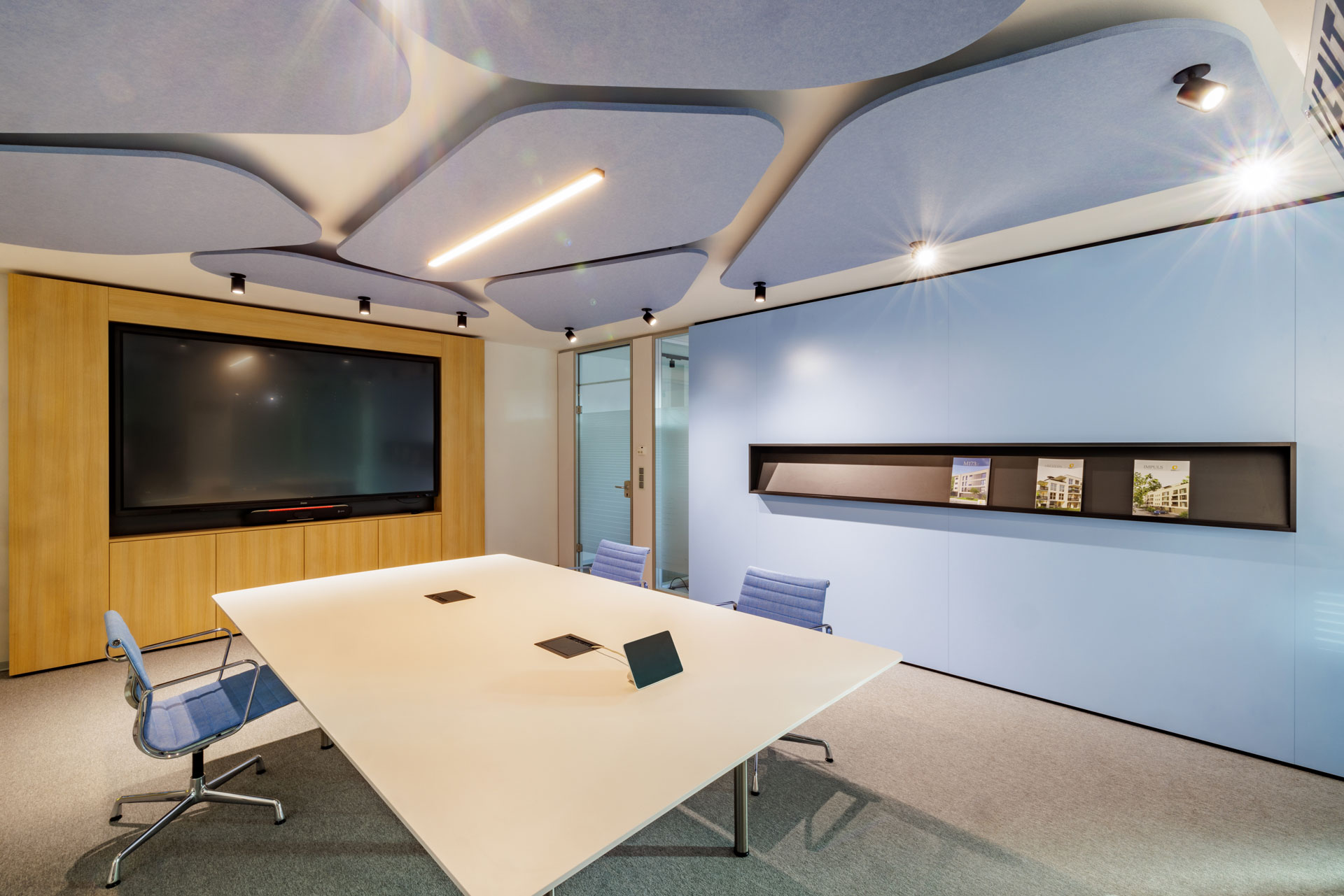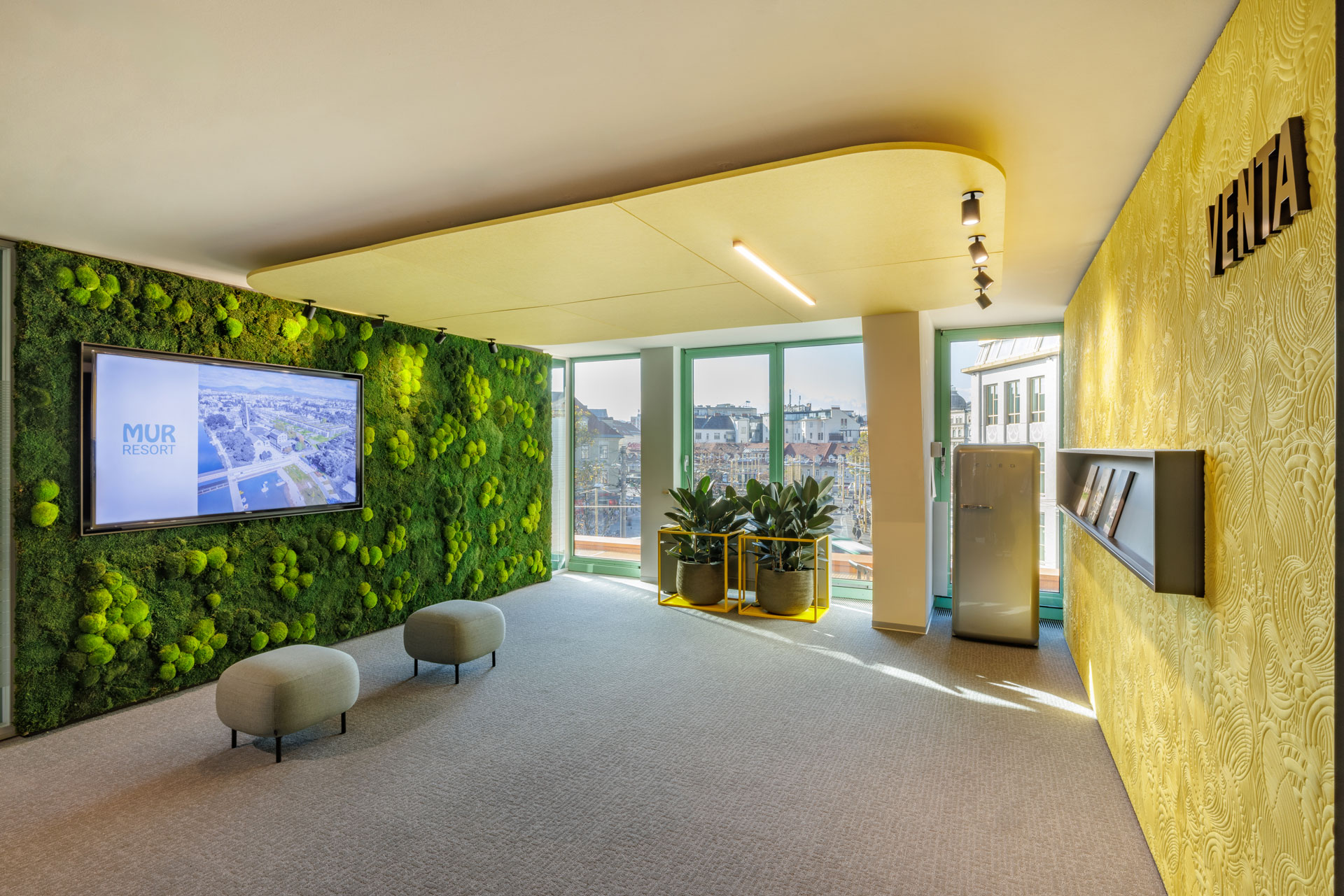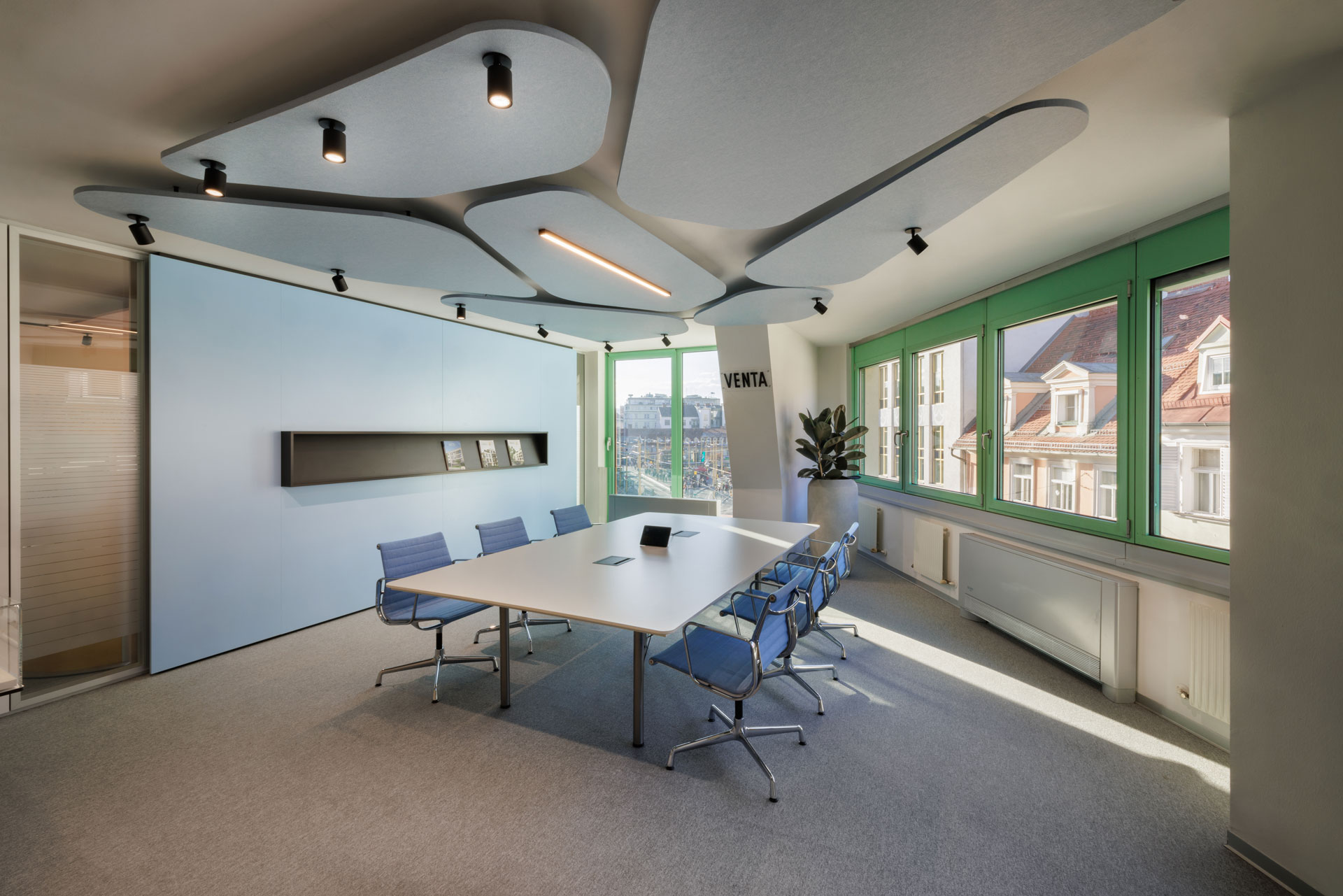 The redesign of the reception area, meeting rooms and offices of the Venta Real Estate Group in Steirerhof Graz follows a clear design vision: the simple, permeable design language and the natural colour palette of the façade should be harmoniously reflected in the interior spaces. The lighting concept plays a central role in this - the luminaires complement the finely tuned colour tones of each room and emphasise the calm, timeless atmosphere. The result is a perfectly balanced interior design that harmonises aesthetics, functionality and acoustic comfort.