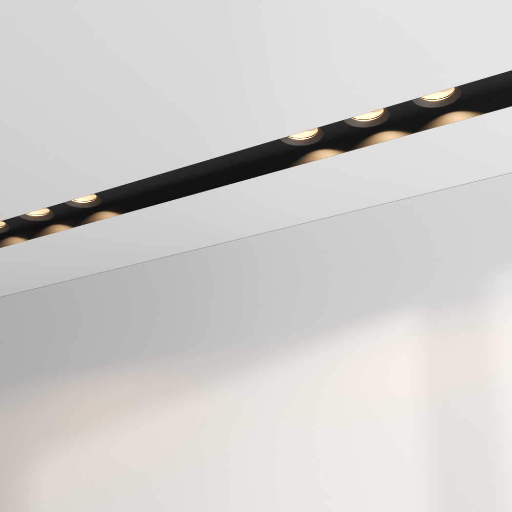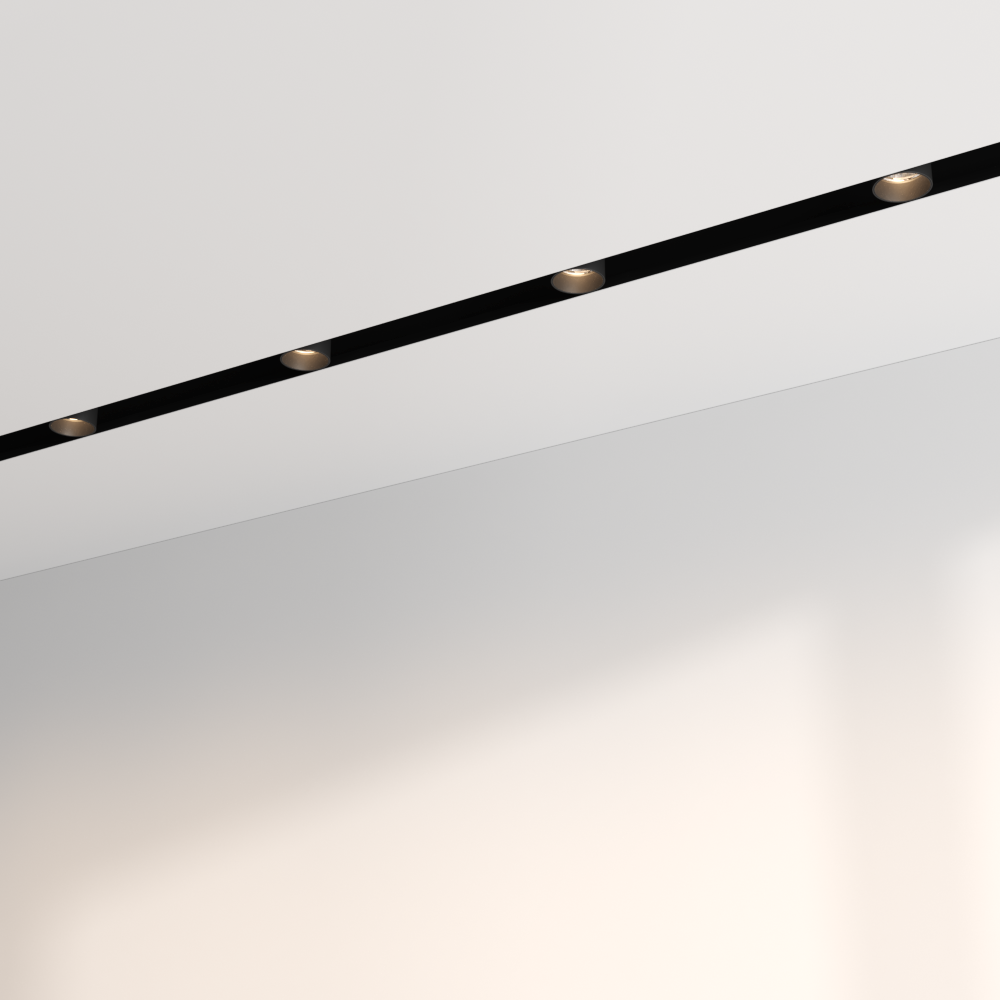A revolutionary mini 230 V track system brings the designer to a whole new level of minimalism. A visible opening of 25 mm houses a deeply recessed track where different lens-based track spots can be mounted. A perfect solution for spaces where lines and light become a part of the architecture.