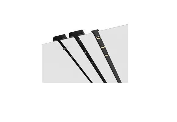 Two integrated LED channels allow optional backlights to add contour lighting and can be switched on separately. Build complex shapes using corner joiners, personalise your system with a choice of beam angles, colour temperature, honeycombs and lens accessories.