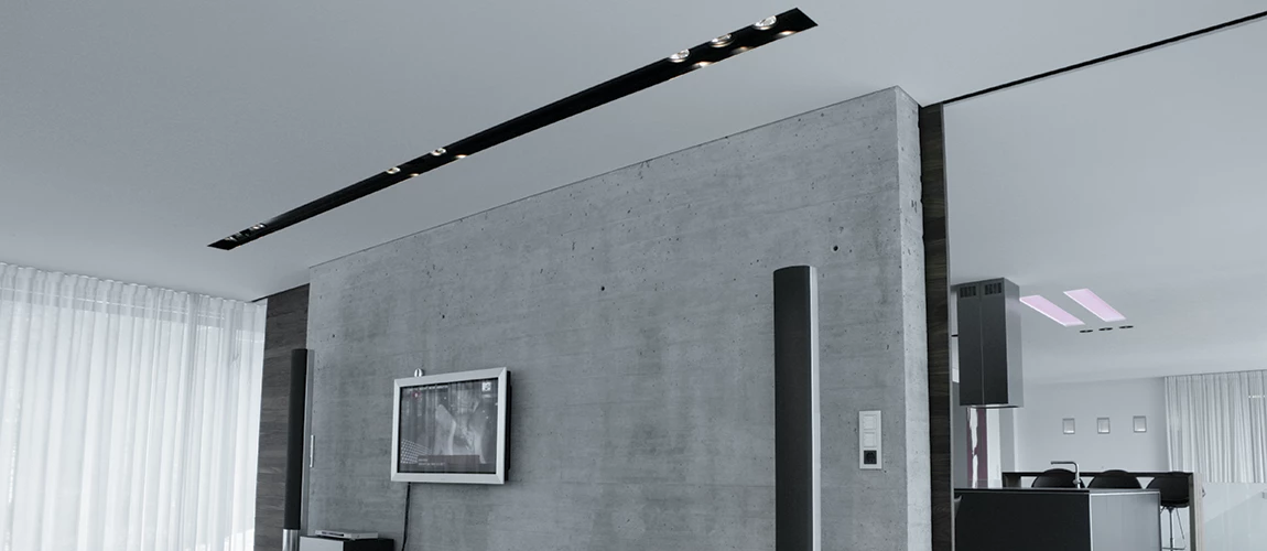 The 2LOOK4 trimless system is a channel with a visible opening of 160 mm. The lighting system can be installed with seamlessly integrated lights in 25+5 different colours. It also offers the possibility to integrate other features such as audio systems or air conditions.