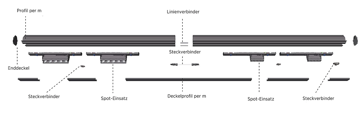 The 2LOOK4 50 Plug lighting system is an extruded aluminium knife edge profile featuring non-glare light modules. It has a visible opening of 50 mm an guarantees effortless attachment of 230 V light connector systems. The system can be equipped with spotlights, downlights and wallwashers.