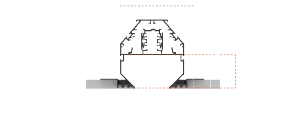 The 2LOOK4 50 TRACK profile system was specially developed for the CENTRIQ family (Ø 60-75-90) and is characterized by the typical razor-sharp, minimalist design. In the recessed 230 V rail, the driver housing for the track lights is flush with the ceiling. A subtle black plastic cover conceals the rail.