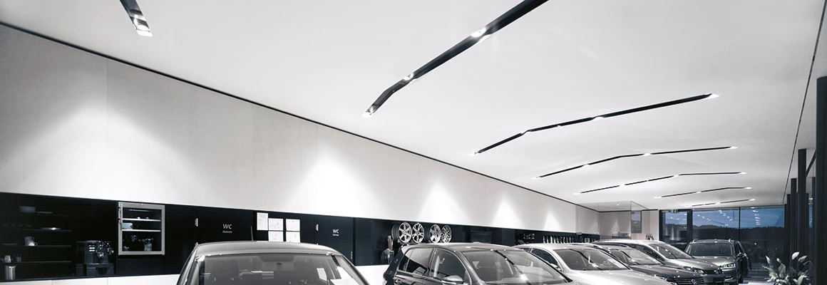 The trimless 2LOOK4 80 lighting system is an aluminium luminaire profile with a visible opening of 80 mm. It offers an effortless attachment of the luminaire inserts with a 230 V plug system. The luminaires are installed using a rotary bolt without tools and can be positioned individually in the duct.