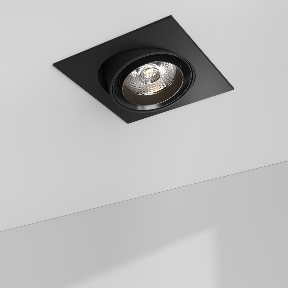 The recessed versions of CENTRIQ can be configured with either a square or round frame to ensure seamless integration and aesthetics within interior spaces. The square version can be grouped on ceilings to create rectangular assemblies, providing highly concentrated illumination. Optional concrete recessed housings are also available for these versions.