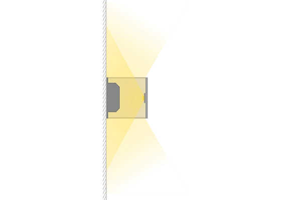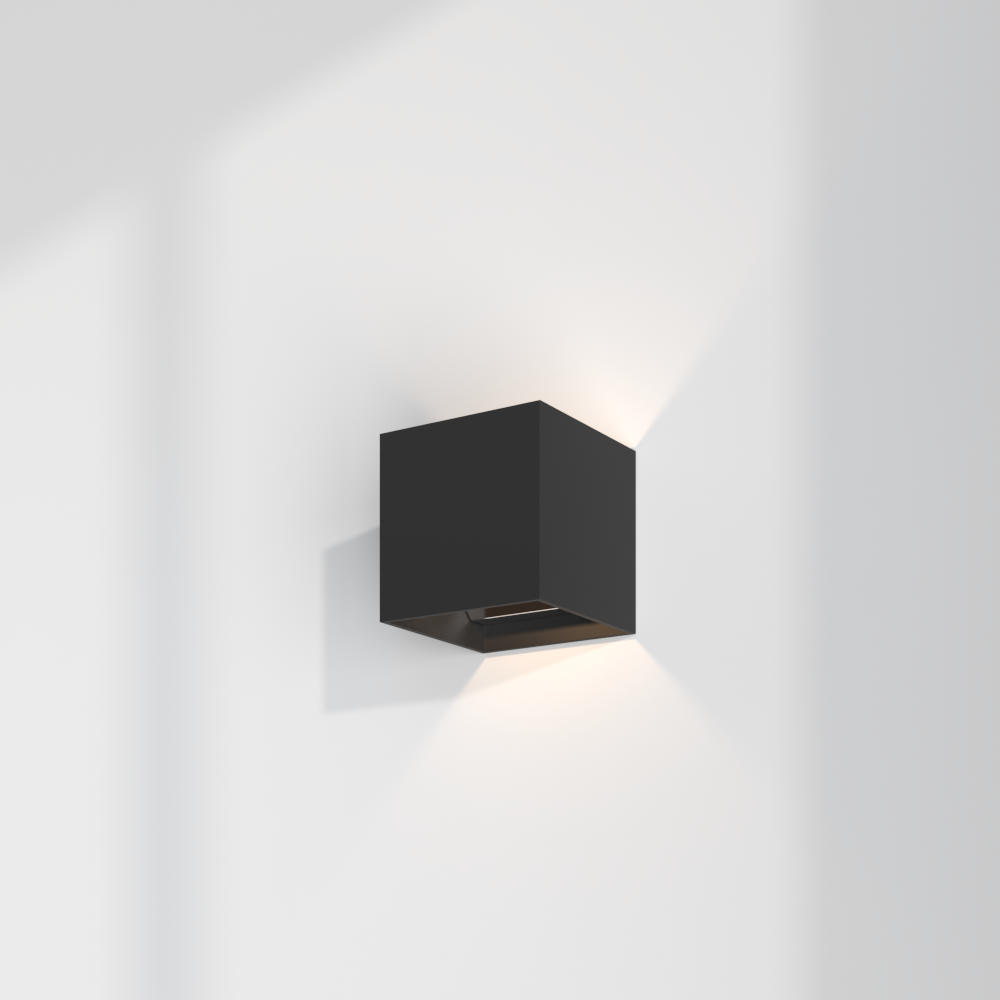 DICE WALL guarantees maximum glare-free lighting, even though the cube is completely open at the top and bottom. An integrated LED is fitted inside the cube in the middle of the front wall. This design makes the light source invisible from any angle and perfectly suited for staircases. The housing with an integrated driver is available in 100 or 120 mm sizes. Clever placement helps to create strong, magical light contours, a special feature of DICE WALL.