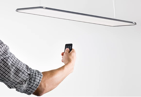 An optional sensor can automatically adapt the luminaire's settings to changing light conditions. In a DALI installation, the sensor for one fitting can also take over the control of other luminaires. In the stand-alone version, the sensor and the whole functionality can be managed with an included remote control..