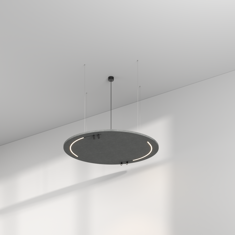 Discover the unique symbiosis of JUST BLACK and ACOUSTIC. Our unique miniaturised track blends seamlessly with our sustainable acoustic panels to create JUST BLACK ACOUSTIC. This combination blends silence and light.
