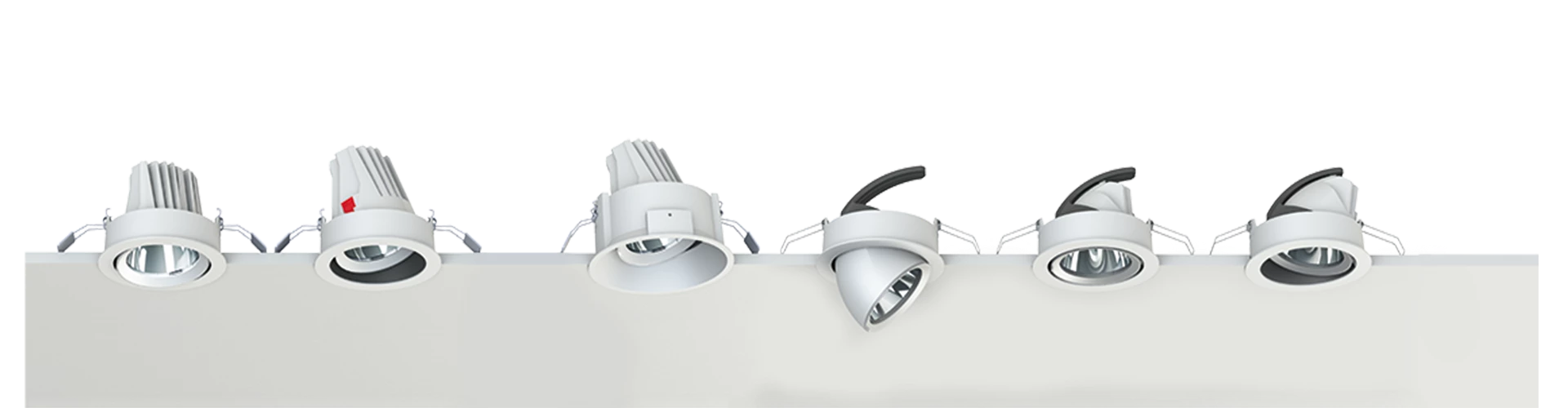 These spots are available in two sizes as well as in ROUND and SQUARE versions. A TWIN lamp version allows maximum flexibility within your lighting concept. All spots feature various rotating and swivelling options. The entire range is suitable for TRIMLESS or RECESSED mounting. A perfect solution for projects where high lumen packages are required.
