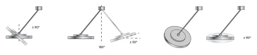 The new innovative SIGN DIVA DANCER range with sophisticated technology and an flexible swivelling system allows the designer to play with eye-catching compositions on both the ceiling and walls. The range comes in different sizes and with an adjustable 750 mm or 1500 mm rod. The light fitting itself is infinitely variable over 180°, while with a patented ingenious system, tool-free adjustment of the rod (+/-50° in steps of 10°) results in playful scenarios (SIGN DIVA DANCER). An additional wire suspension is forseen for diameters of 850 mm onwards or a tube length of 1500 mm. Set the light where you need it!