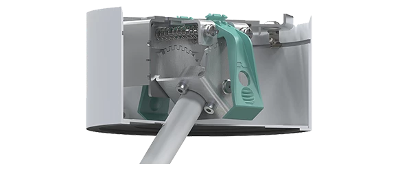 A solid hinge with a precise friction system at the bottom of the road allows a stepless and tool-free adjustment over +/- 90°