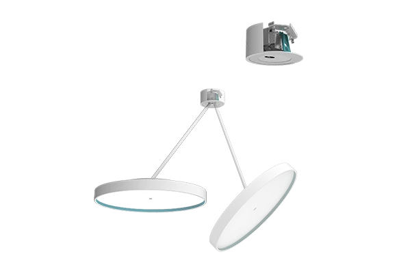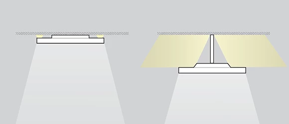 For pendants, a specially designed canopy conceals suspension grippers and supports minimal suspension heights for a clean, elegant appearance. A dedicated cover plate enhances the overall look and facilitates easy maintenance, keeping the luminaire free of dust and perfectly presentable.
