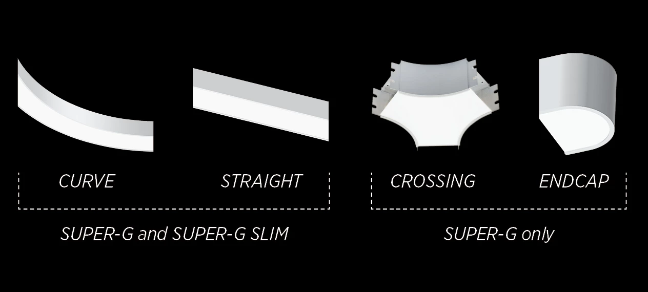 Dynamic flowing lines of light, aluminium profiles that can be combined in imaginative ways and unshadowed illumination make SUPER-G a favourite for creative designs.
