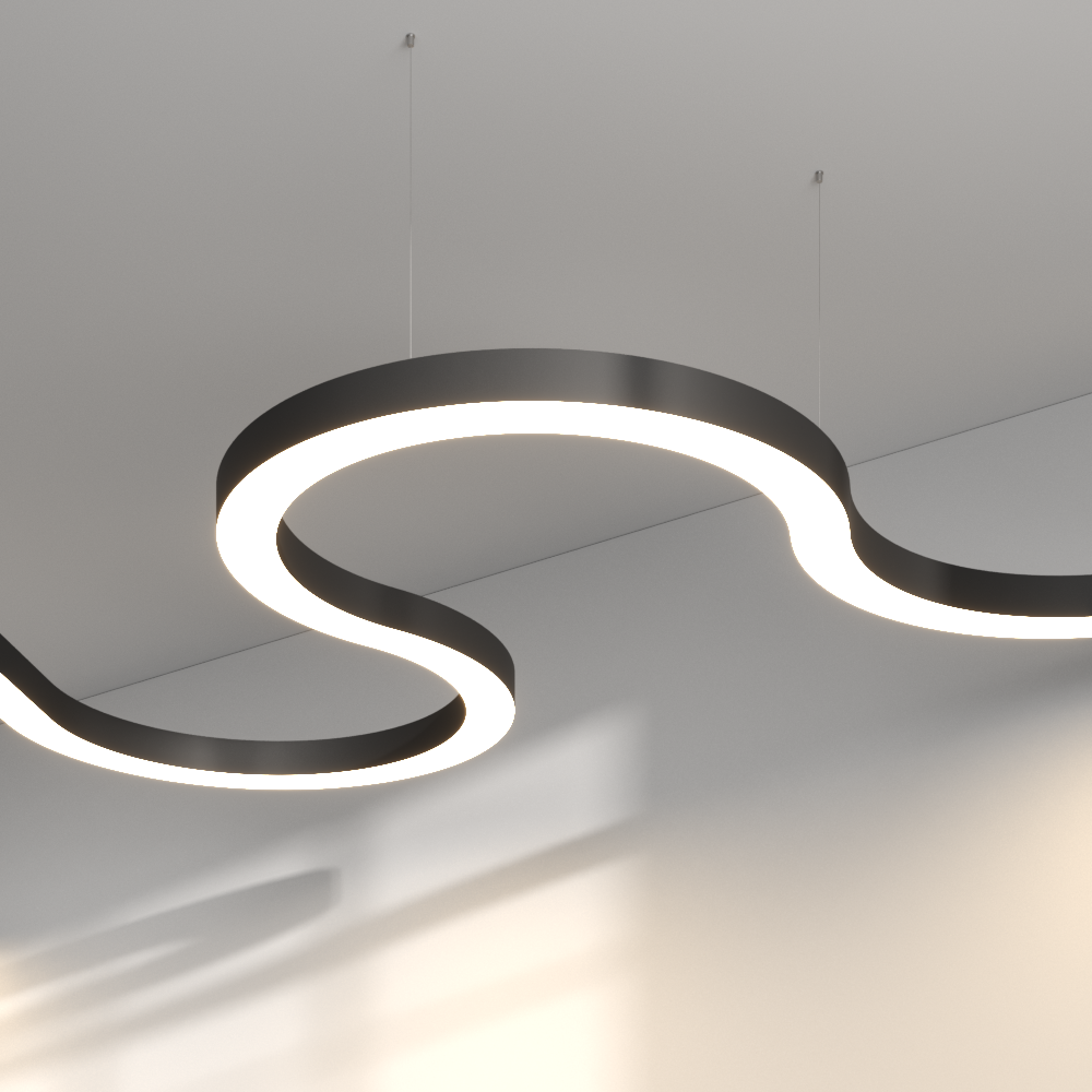 Dynamic, buoyant, powerful – SUPER-G brings movement to light design. Inspired by the experience of high velocity, the avantgarde luminaires captivate with their liveliness and extraordinary freedom of design. SUPER-G is based on the GLORIOUS lamp: The closed circle of GLORIOUS is opened into free-flowing lines in SUPER-G. The SUPER-G lamps are composed of individual parts that can be seamlessly and infinitely arranged together. Straight connecting pieces in various lengths, curves in different radii, corners and intersections can be combined in a limitless number of sequences. Due to its free alignment, SUPER-G can be optimally adjusted to any architectural dimensions or assembled to create individual shapes.
