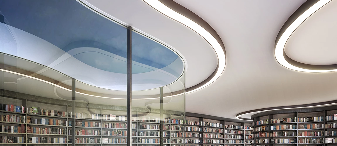 SUPER-G translates motion into lighting design. The surface-mounted LED profile system with a width of 150 mm offers curves and straight elements that are seamlessly connected. A 120° cross profile is also available for creative light structures. The diffusers for SUPER-G are LEDoptimized and provide absolutely glare-free and uniform light - right down to the end caps with specially integrated LEDs.